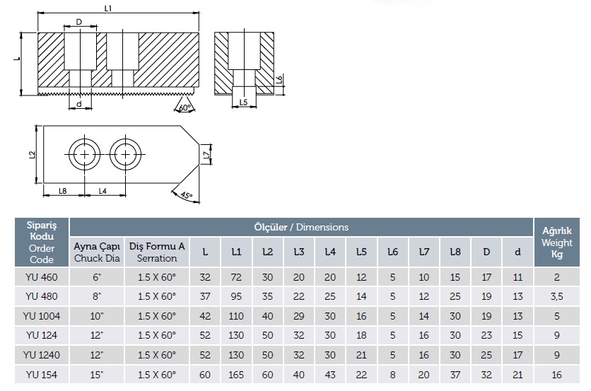 Kestools Kiinnitystarvikkeet sorvaukseen Leuat Pehmeät leuat 1.5 X 60° 4-leukaisen istukan matalat leuat