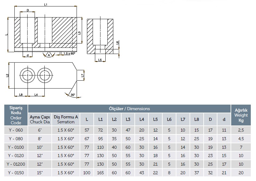 Kestools Kiinnitystarvikkeet sorvaukseen Leuat Pehmeät leuat 1.5 X 60° Korkeat leuat