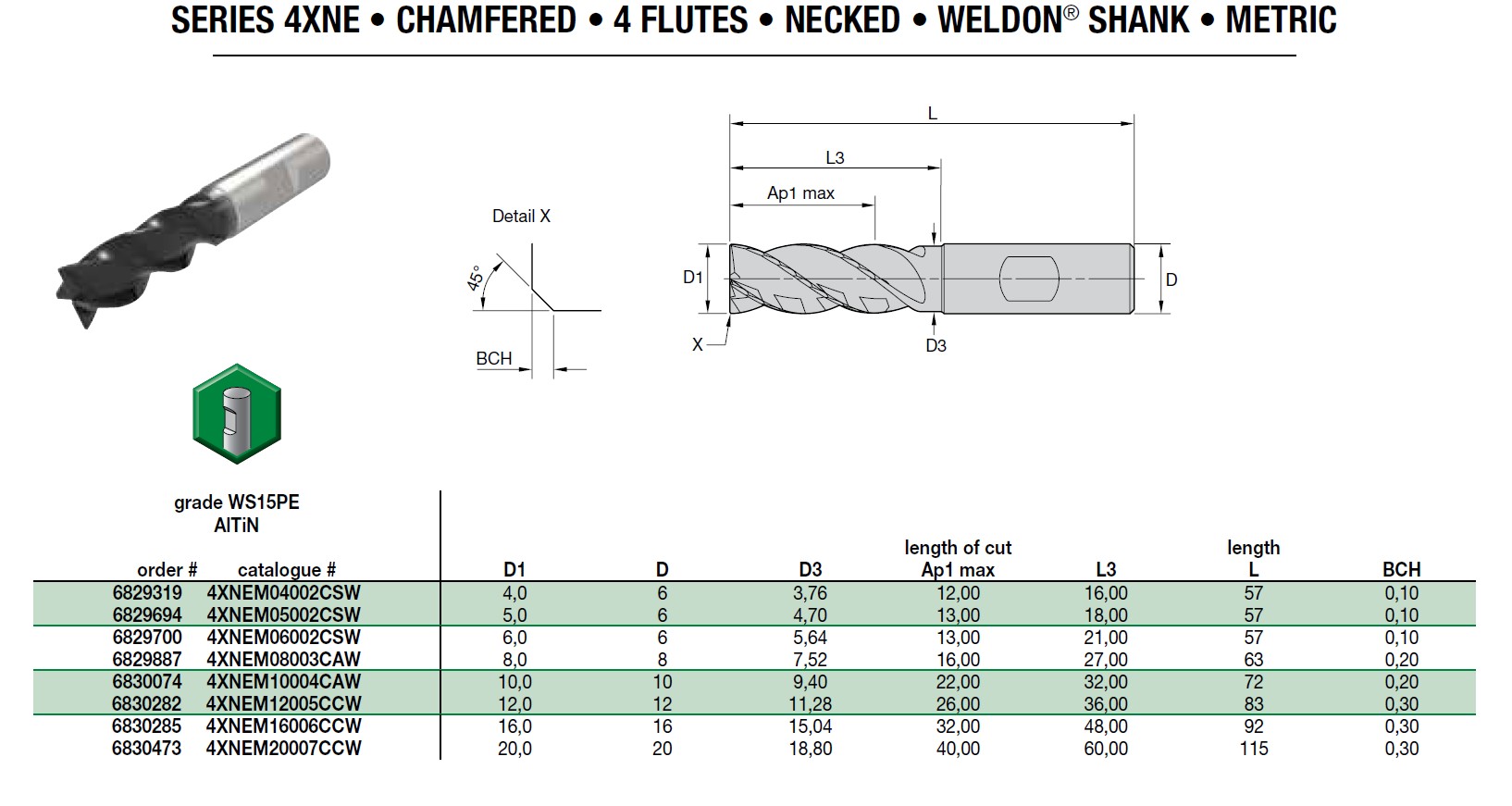 Kestools Jyrsintä Jyrsintapit Teräkselle Jyrsintapit suojaviisteellä Widia Extreme