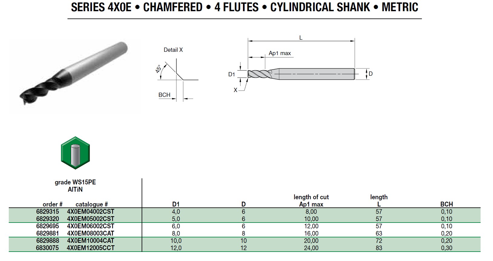 Kestools Jyrsintä Jyrsintapit Teräkselle Jyrsintapit suojaviisteellä Widia Extreme