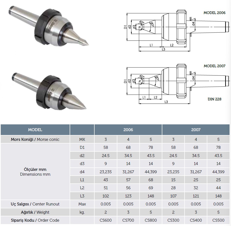 Pyörivät tarkkuuskärjet CNC-koneille mutterilla