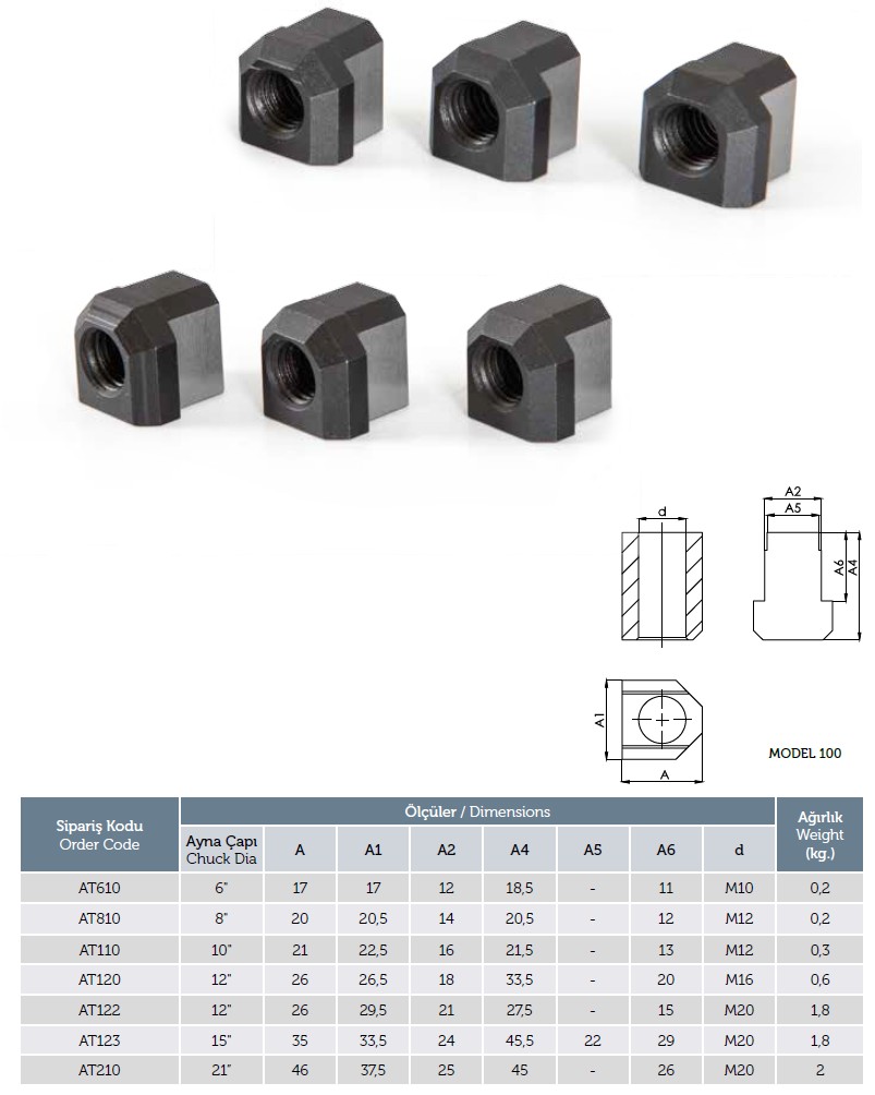 T-ura mutterit 15'' istukalle yhdellä reijällä (6kpl / sarja) AT123